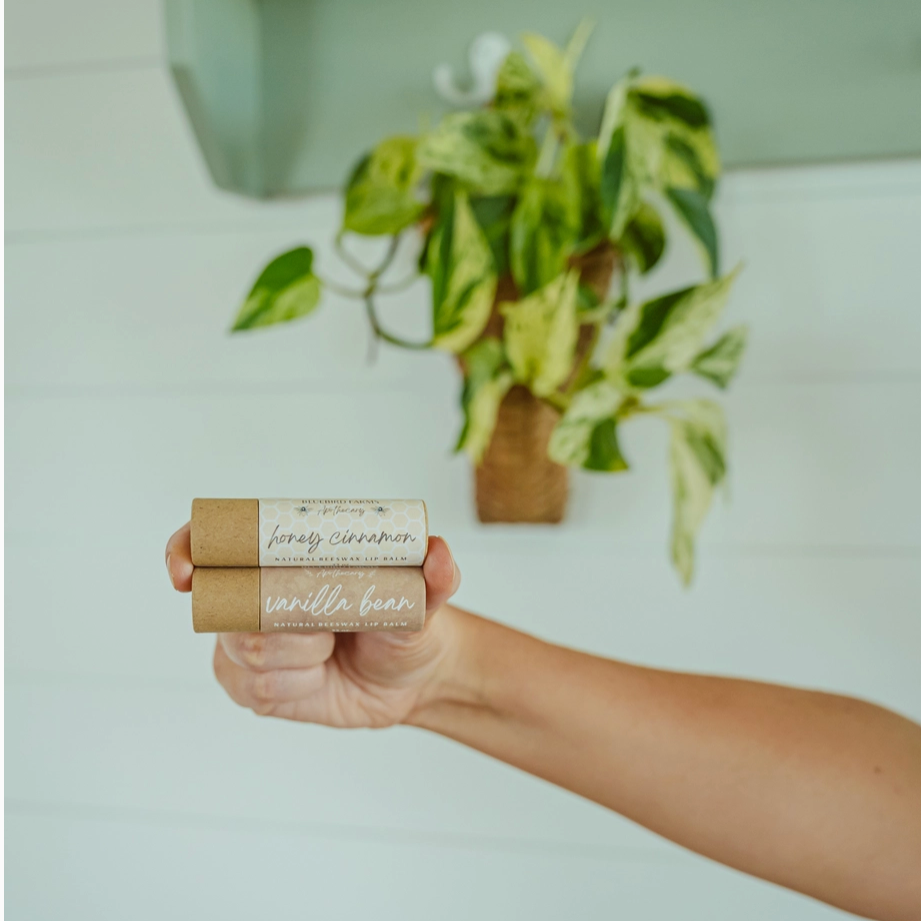 At Bluebird Farms Apothecary, all of our lip balms are handmade in small batches and free of synthetic fragrances, preservatives, and colorants. Also, enjoy this plastic-free alternative to regular lip balms, which is twice the size of traditional plastic tubes!