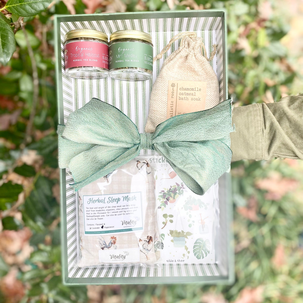 Our gift baskets are a curated collection of quality handcrafted items from small farms & businesses. We strive to support local and shop small as much as possible. Each item in the basket comes from our own store, or from another small business that fits within the guidelines of our purity standards. No dyes, no fragrance oils, no added chemicals.