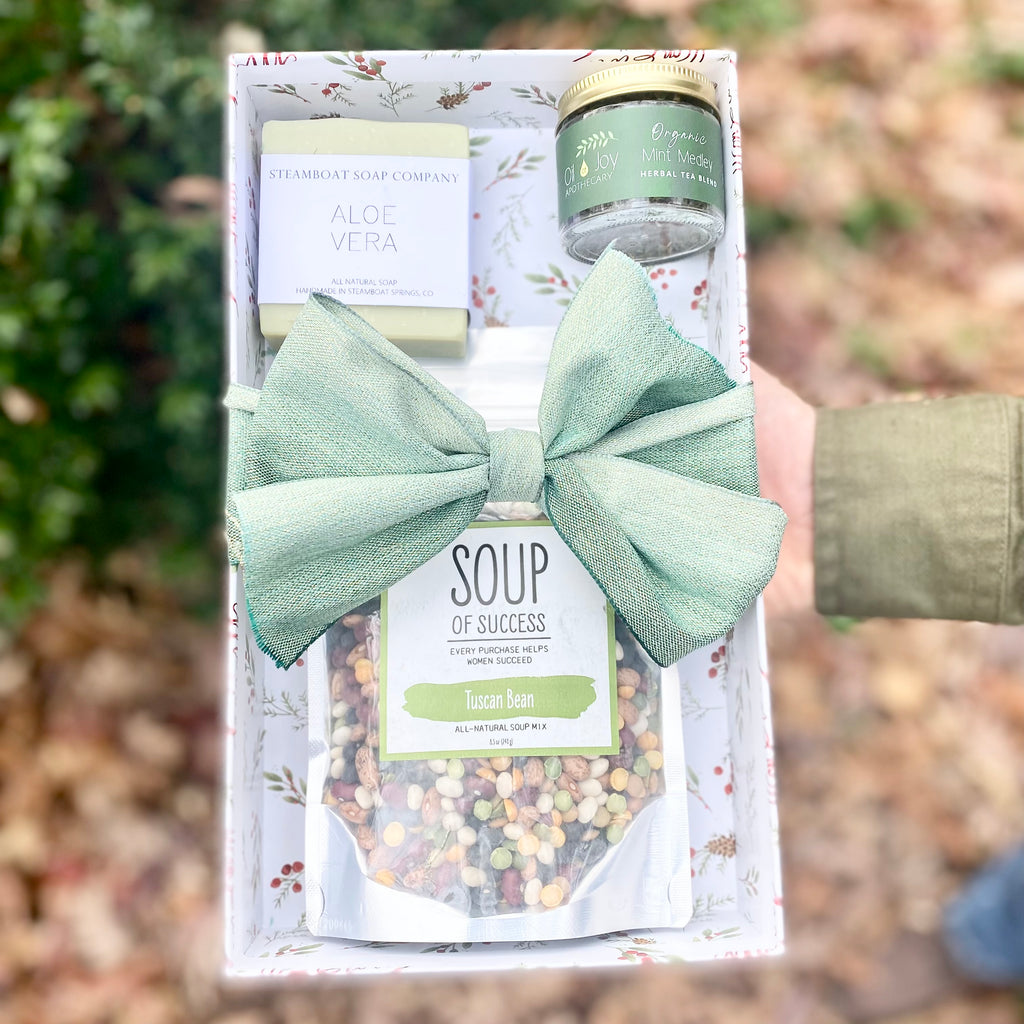 Our gift baskets are a curated collection of quality handcrafted items from small farms & businesses. We strive to support local and shop small as much as possible. Each item in the basket comes from our own store, or from another small business that fits within the guidelines of our purity standards. No dyes, no fragrance oils, no added chemicals.